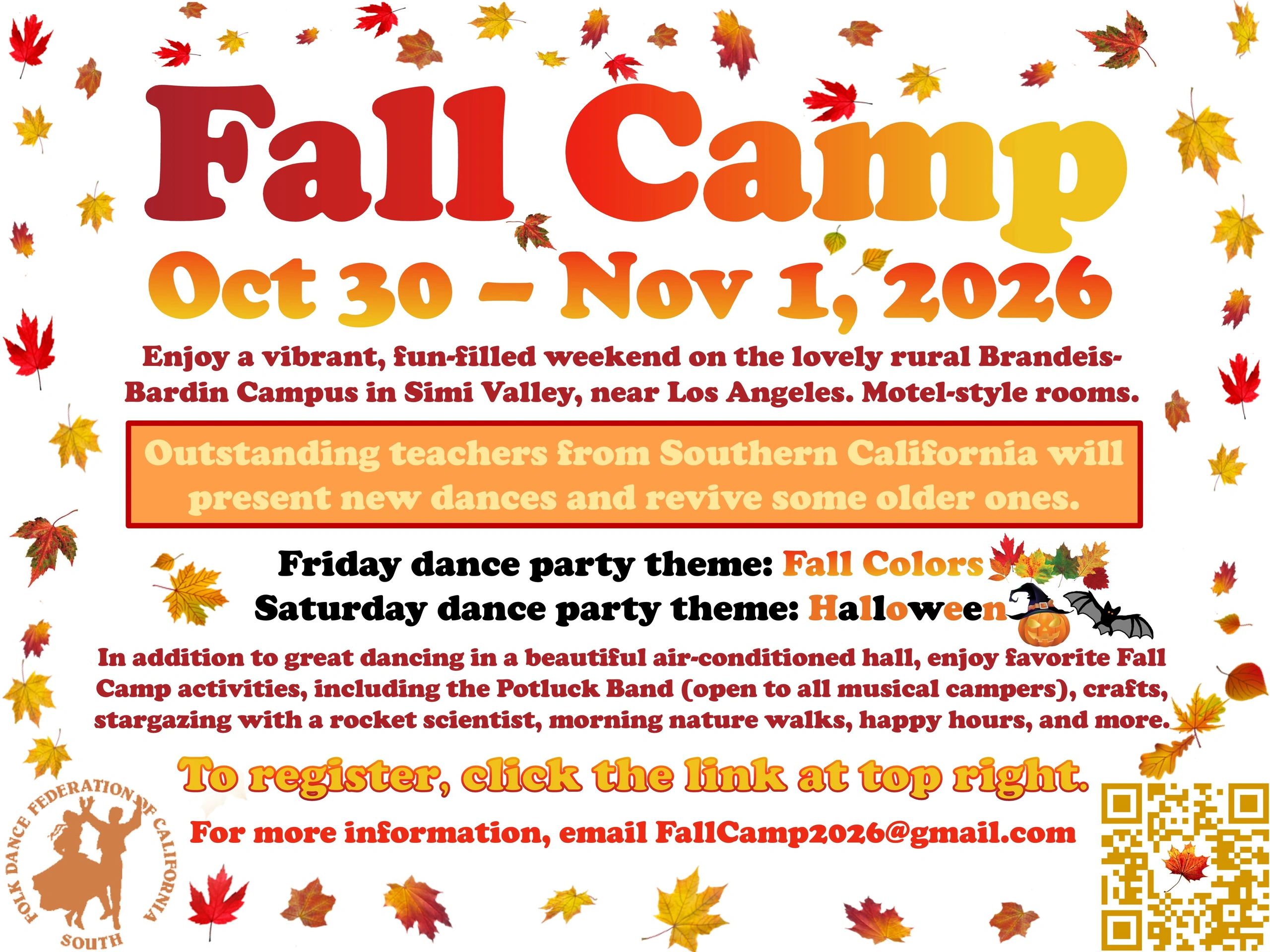 This camp is generously supported by the Folk Dance Federation of California, South.